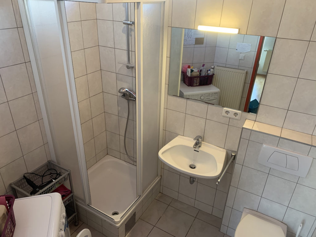 Ein geräumiges Badezimmer mit WC, Dusche und Waschmaschine sowie ein zusätzliches WC stehen als Sanitärräume zu Verfügung.